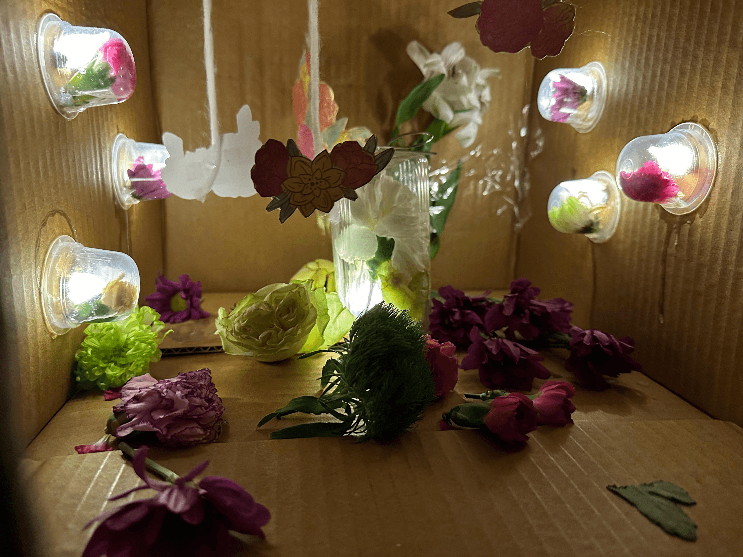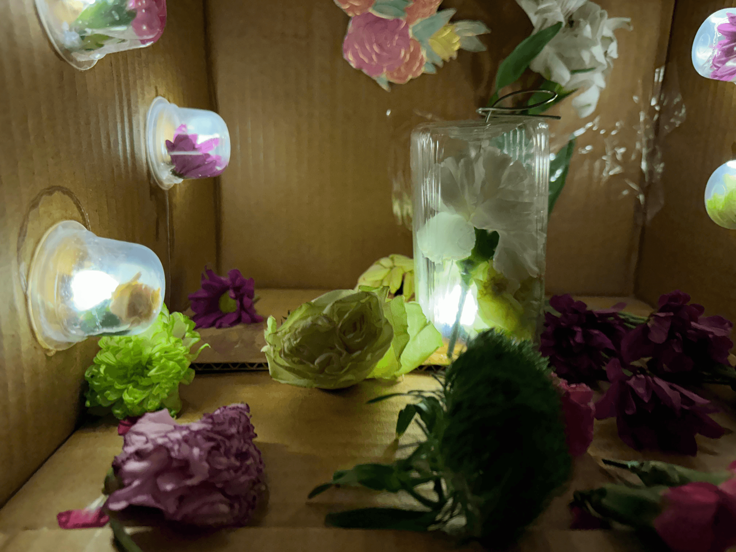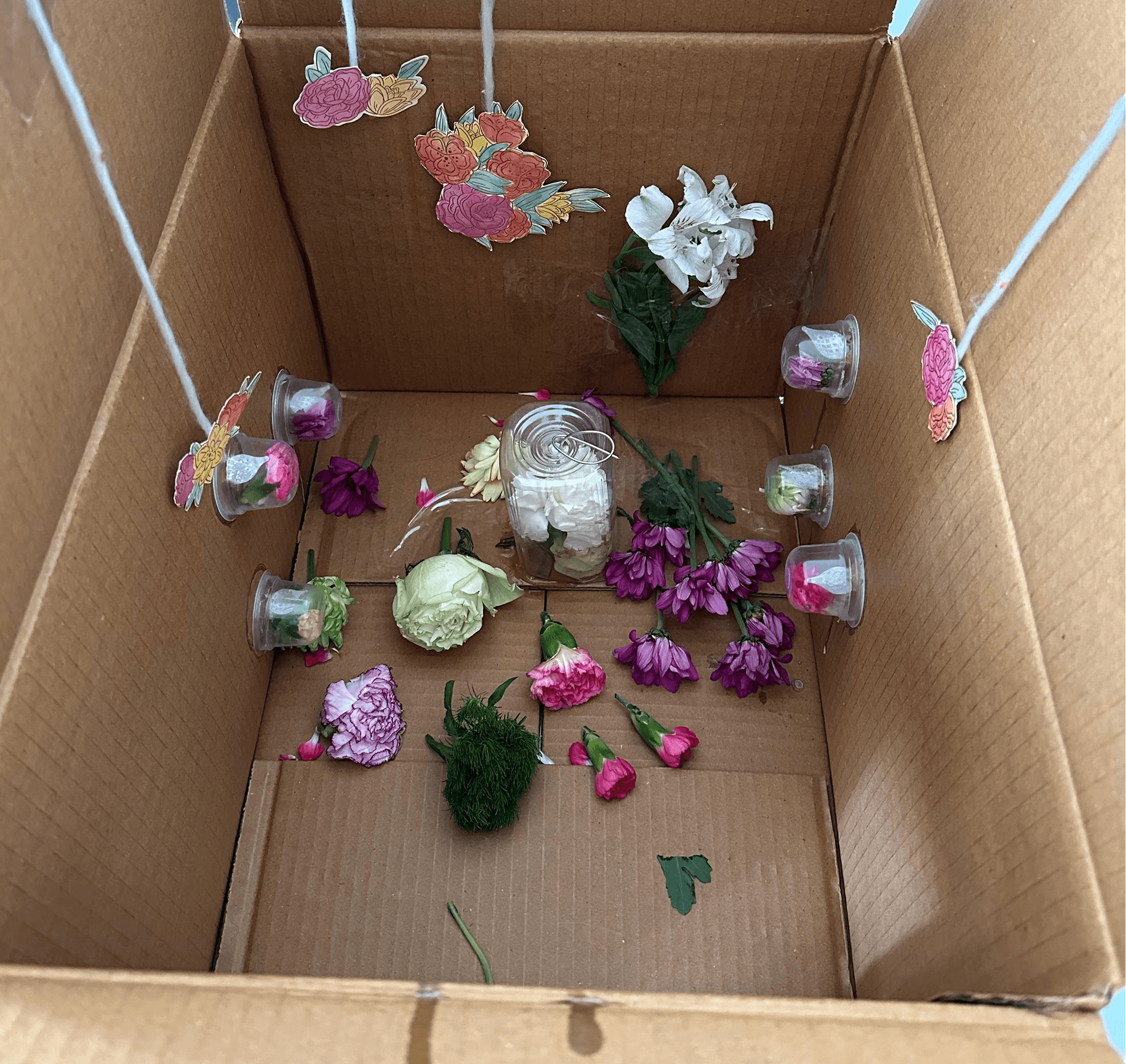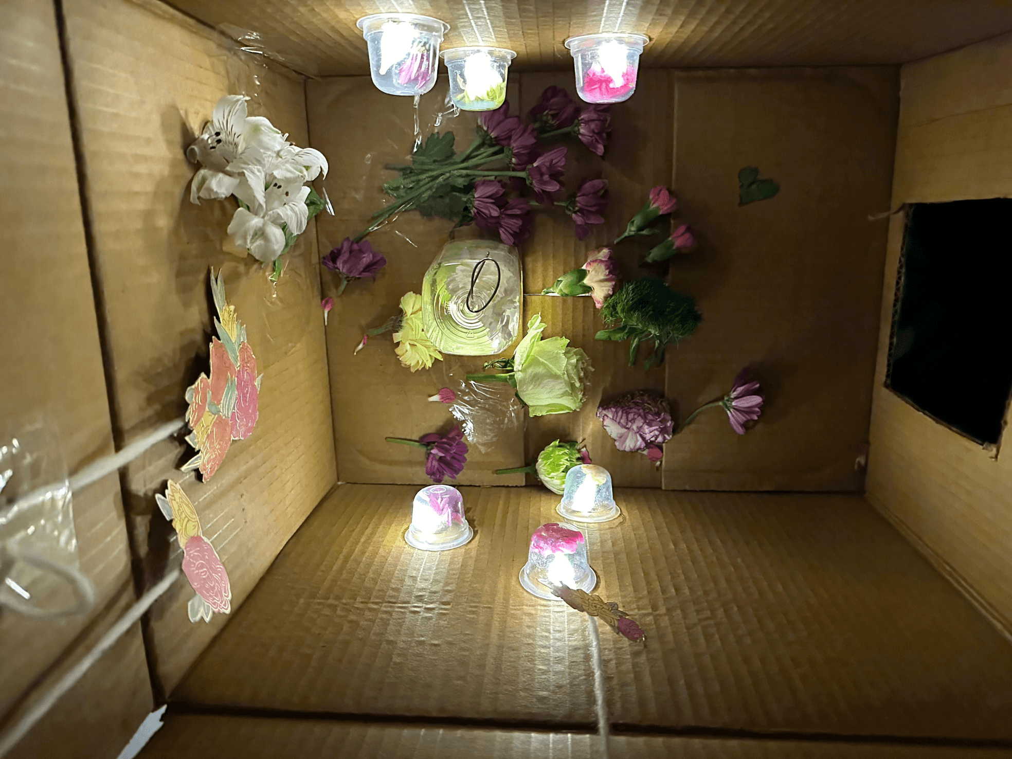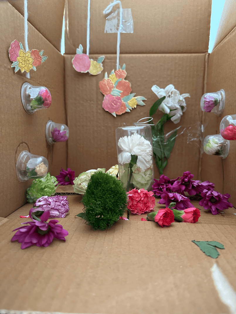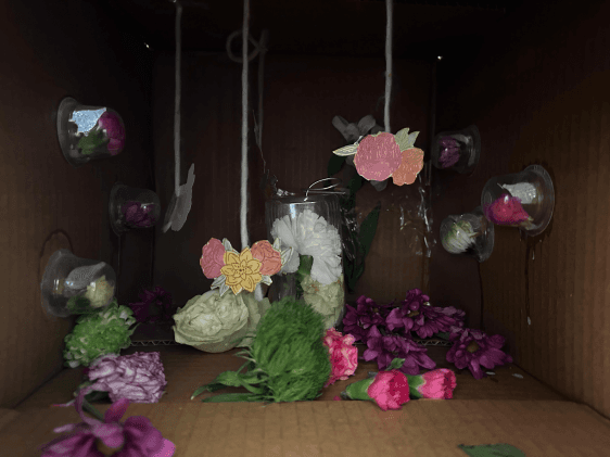 We will place these flowers inside a cardboard box, which, as a semi-enclosed space, serves to simulate an indoor environment.