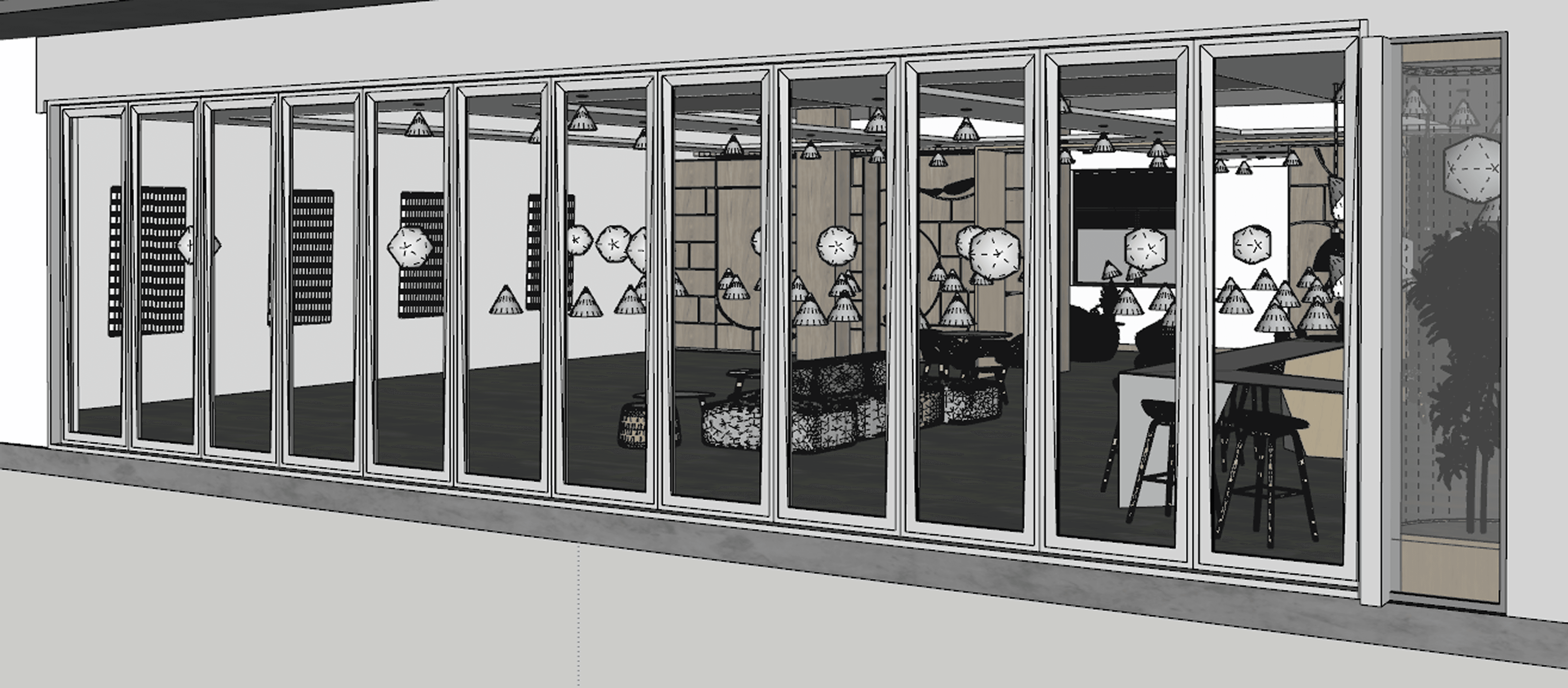 We have constructed a 3D model in SketchUp and rendered it to visually represent our research findings. We believe that creating a 3D model allows us to better showcase how trauma-informed design can be applied in interior design practices, offering our audience a comprehensive visual understanding. Relying solely on textual descriptions to convey design principles and concepts can be abstract and insufficient. Since spatial design is fundamentally about human-centered design, it is crucial that our design philosophies are not only discussed but also practically implemented in tangible outcomes