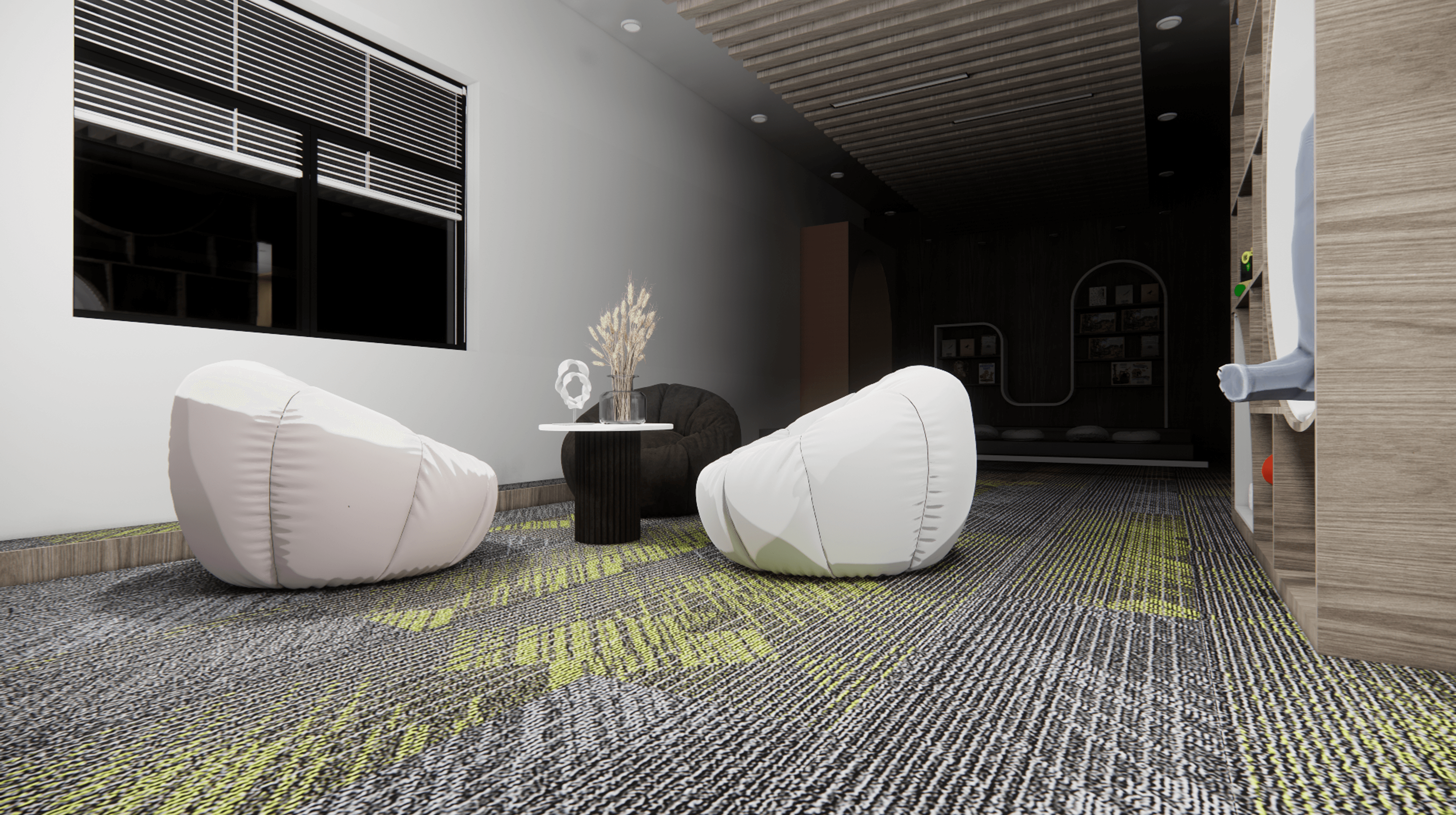 3D model to finally provide the whole overview of the applied interior space. This delivery mainly focus on visualizing the trauma-informed design principle applied on real interior space.